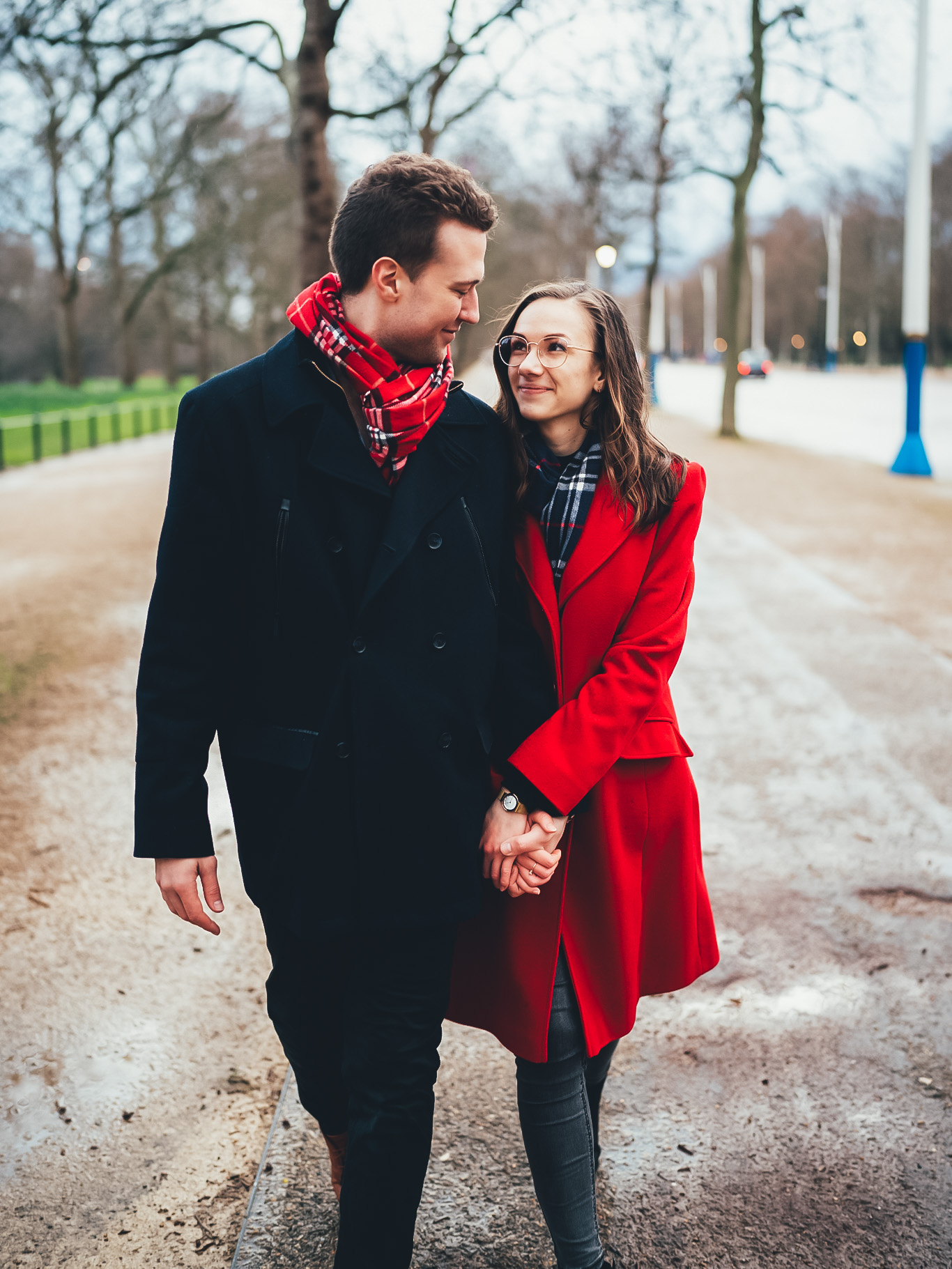 After a lunch, they left Sky Garden for a stroll around the city. When they reached Hyde Park, a street photographer cautiously approached them – he was looking for couples to photograph on Valentine’s Day for his portfolio. Kate hesitantly agreed, and soon they were walking across the grass into the middle of the lawn. As the photographer began to give direction, Zach stealthily pulled a small black box from his pocket and lowered himself on one knee.